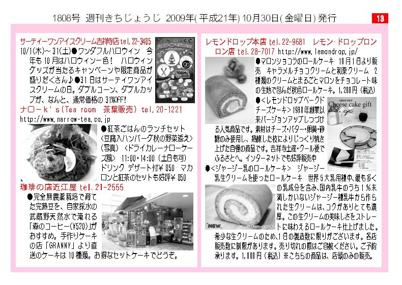 今週号インデックス 週刊きちじょうじトップページへ 東京ネットホームページへ