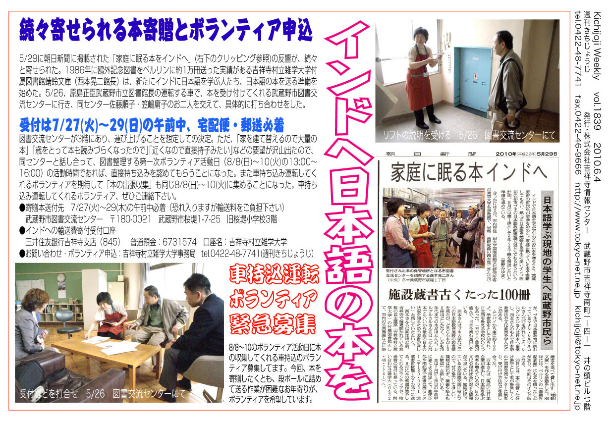 | 週刊きちじょうじ 1855号INDEX <2010年9月24日発行> |