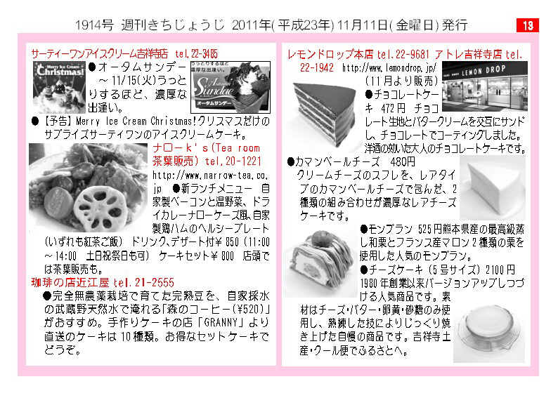 今週号インデックス 週刊きちじょうじトップページへ 東京ネットホームページへ