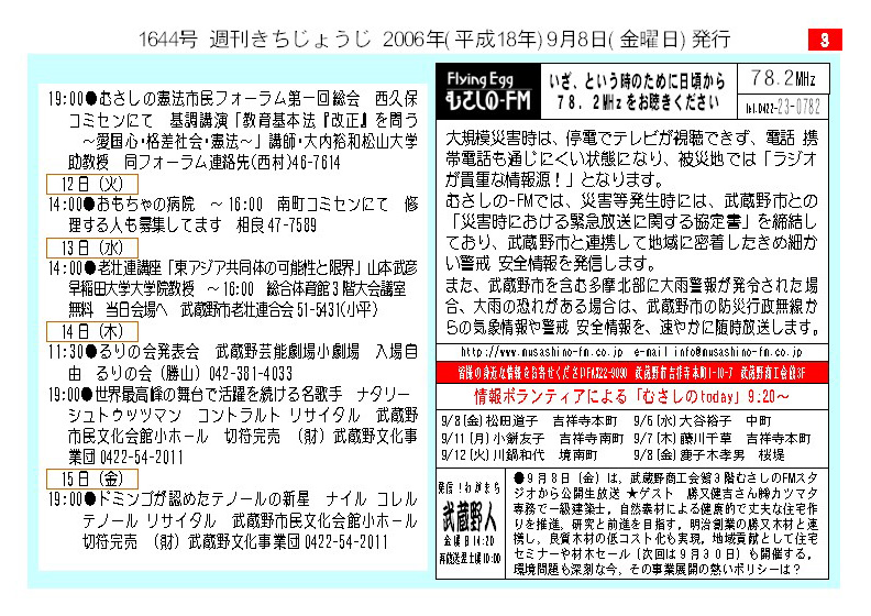 今週号インデックス 週刊きちじょうじトップページへ 東京ネットホームページへ
