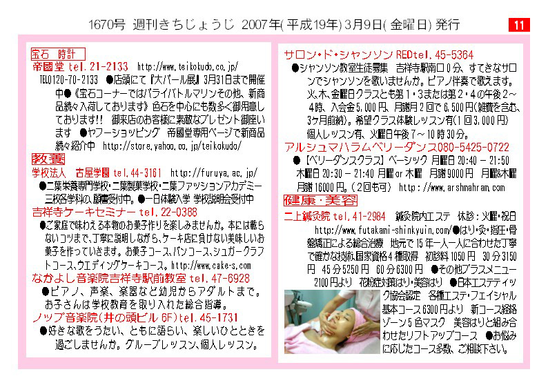 今週号インデックス 週刊きちじょうじトップページへ 東京ネットホームページへ