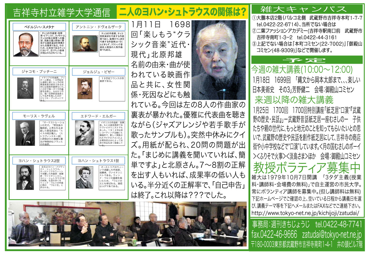 | 1月11日 1698回 | 「楽しもう“クラシック音楽”近代・現代」北原邦雄 |