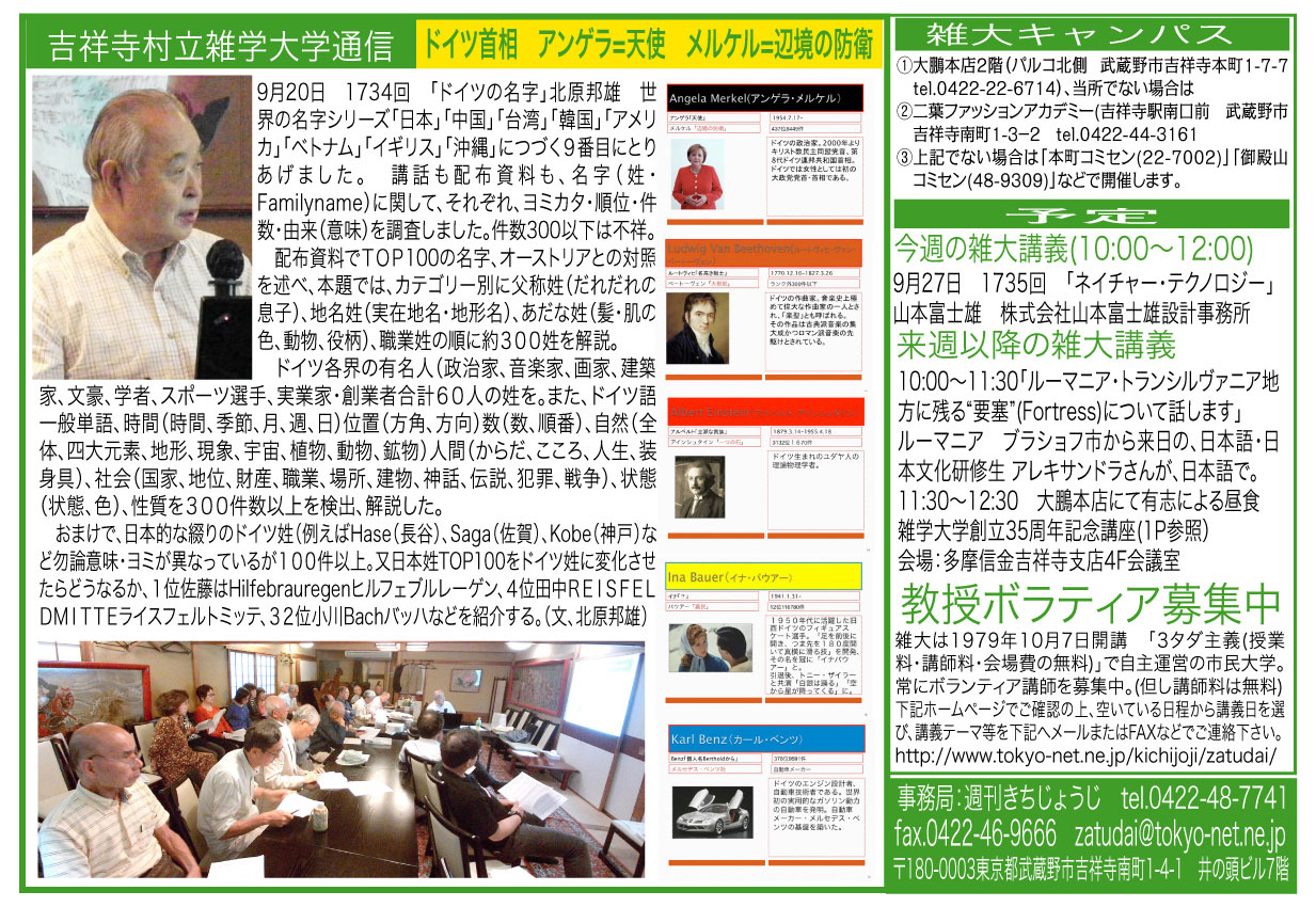 | 9月20日 1734回 | 「ドイツの名字」北原邦雄 | |