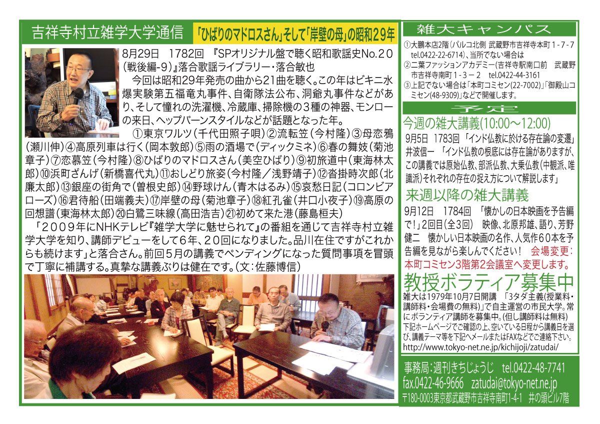 8月29日(土)『SPオリジナル盤で聴く昭和歌謡史No.20(戦後編-9)』落合歌謡ライブラリー・落合敏也 |