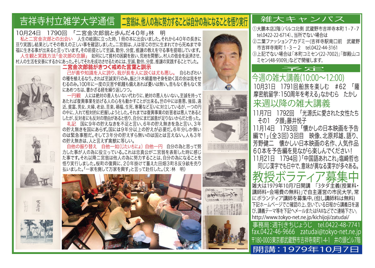 | 10月24日 1790回 | 10月24日「二宮金次郎翁と歩んだ40年」林 明 | |