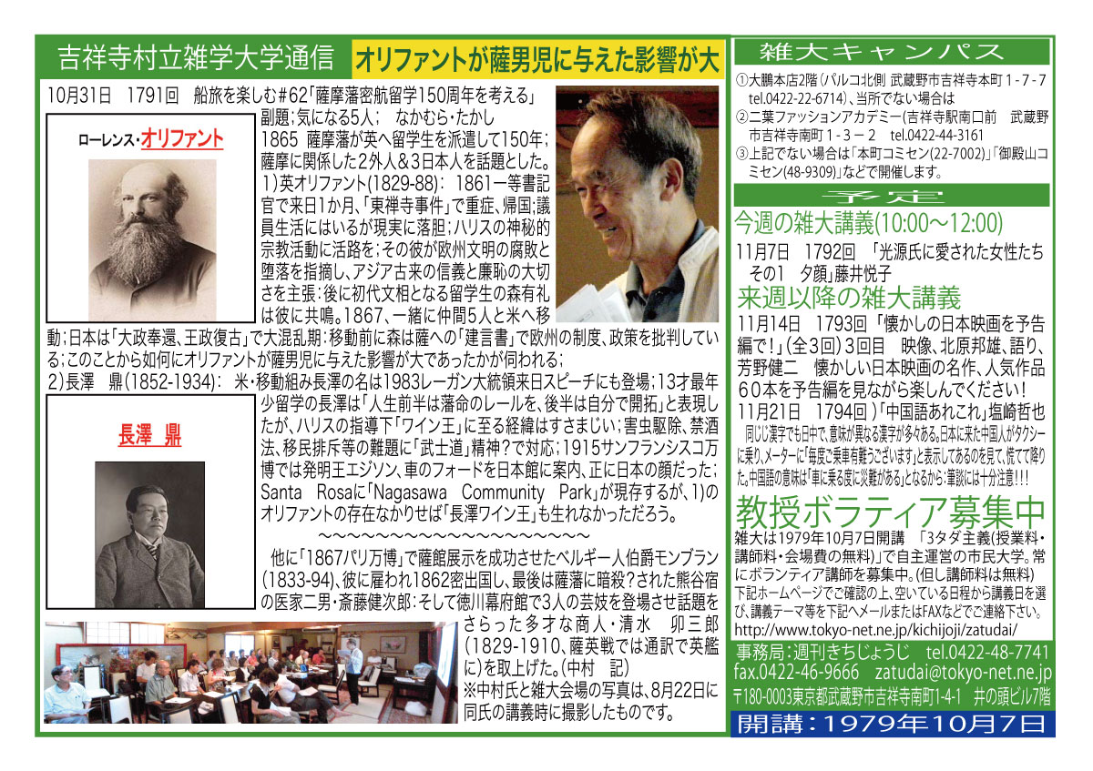 | 10月31日 1791回 | 10月31日 船旅を楽しむ #62 「薩摩密航留学:150周年を考える」なかむら たかし |