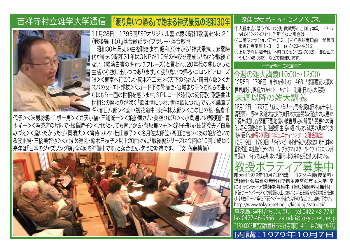 11月28日(土)『SPオリジナル盤で聴く昭和歌謡史No.21(戦後編-10)』落合歌謡ライブラリー・落合敏也 |