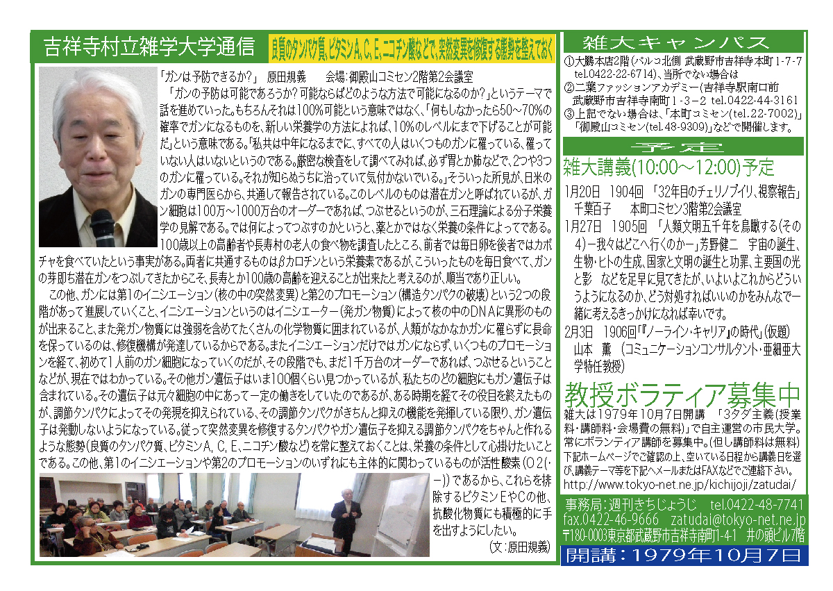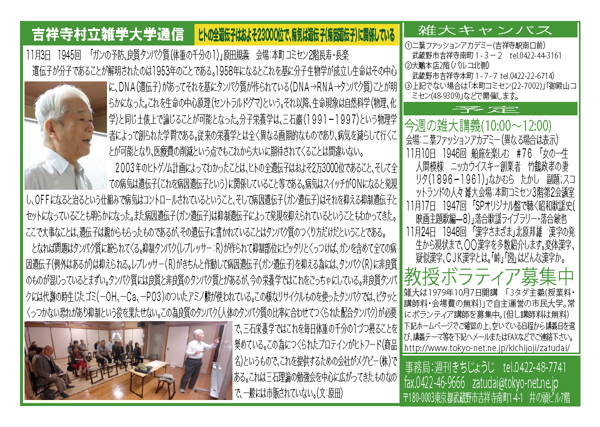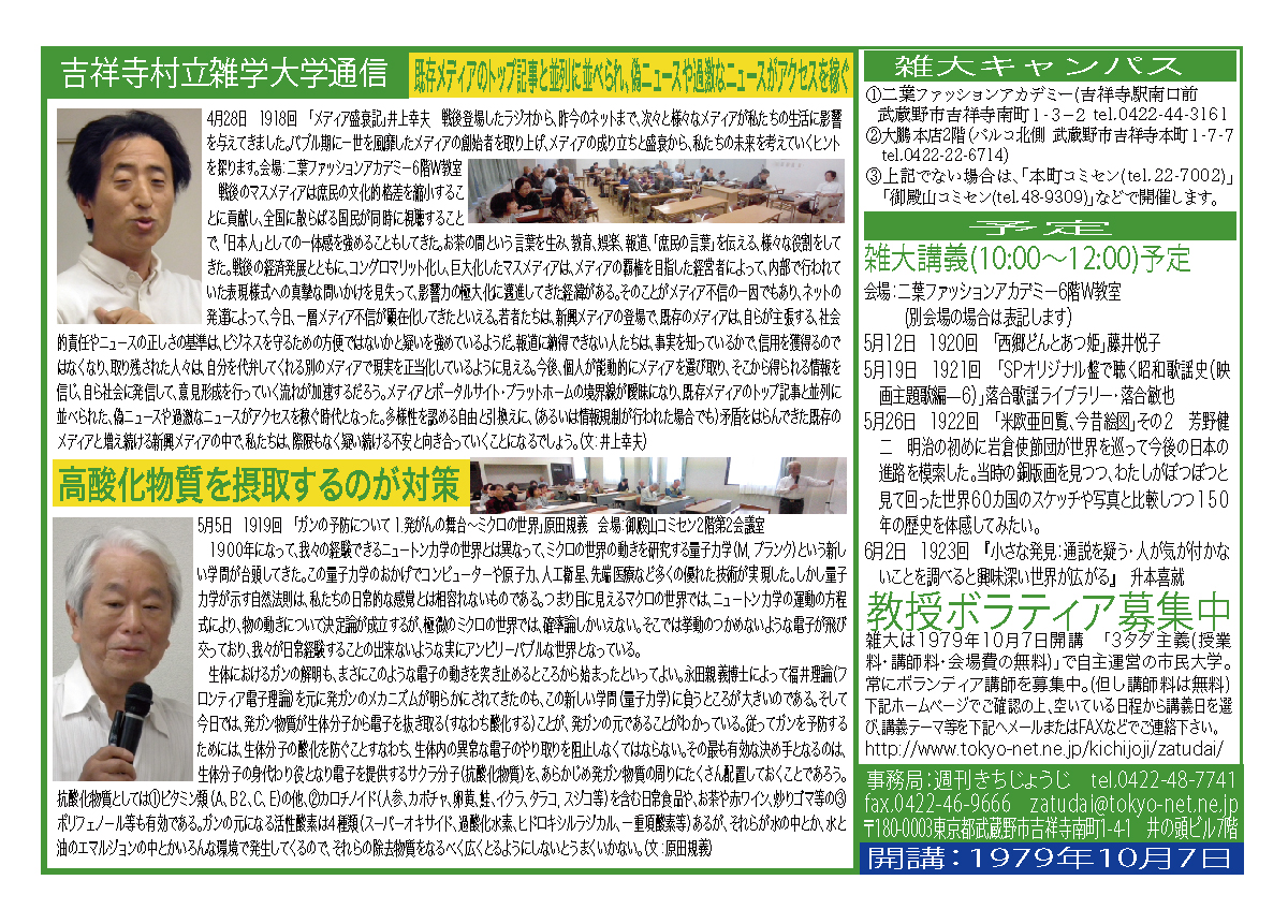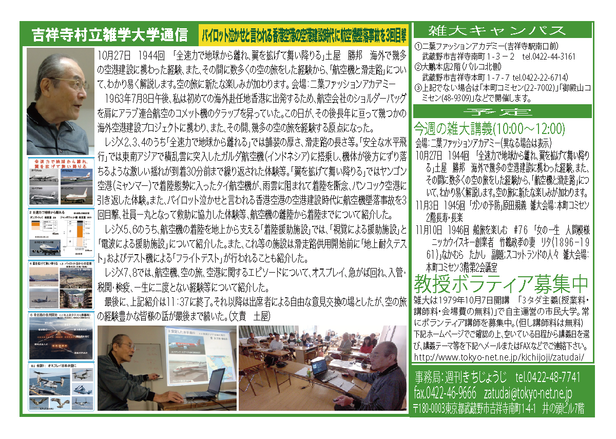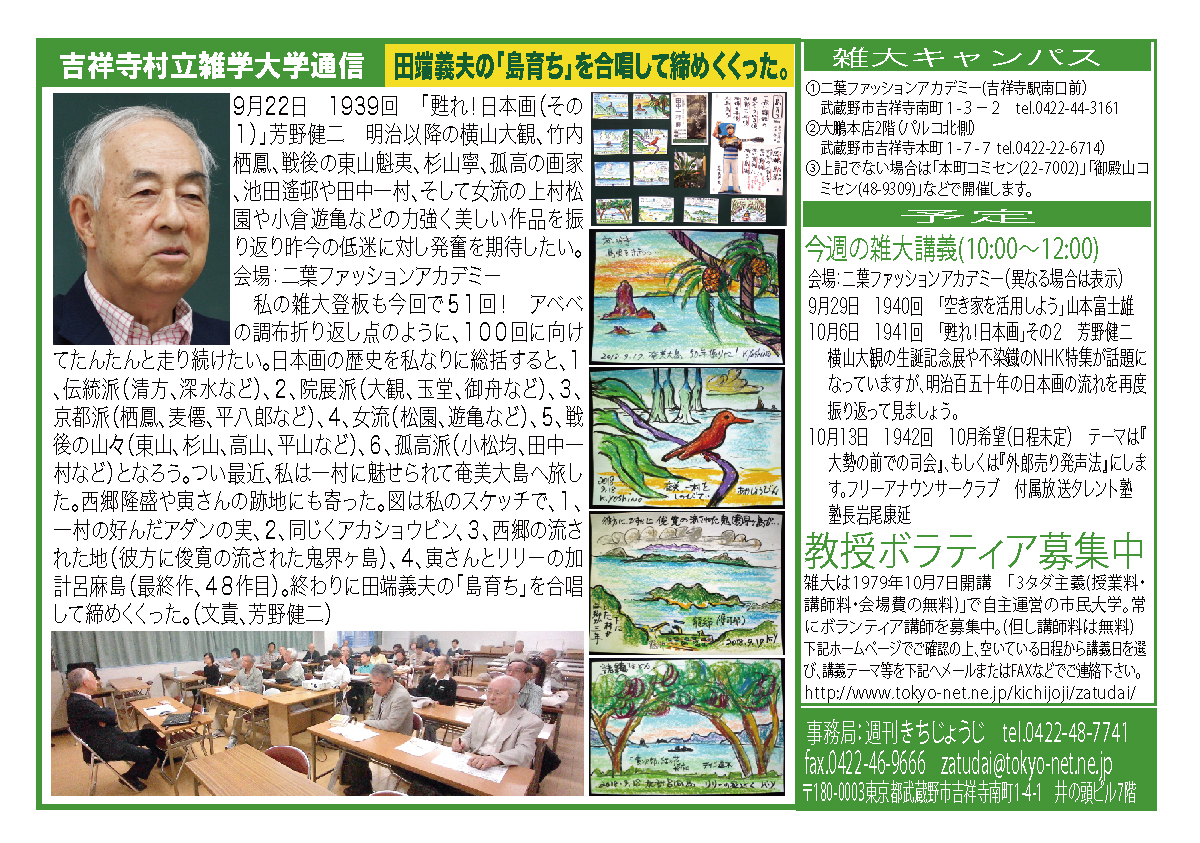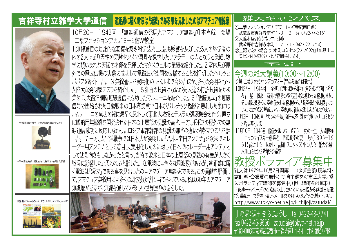 「週刊きちじょうじ1975年に創刊して・・・、そして雑学大学は1979年に開講して・・・、そして将来は・・・?」大橋一範 会場:二葉ファッションアカデミー6階W教室 |
