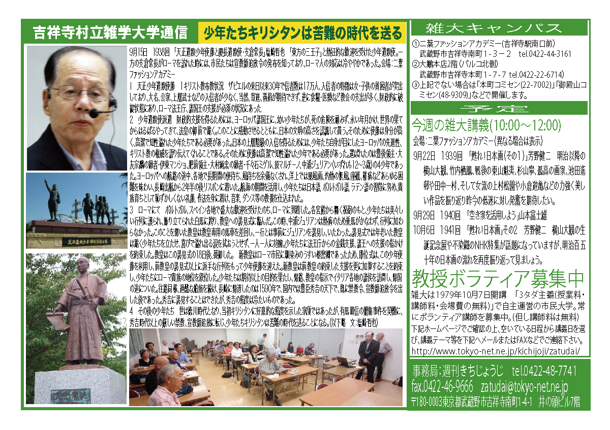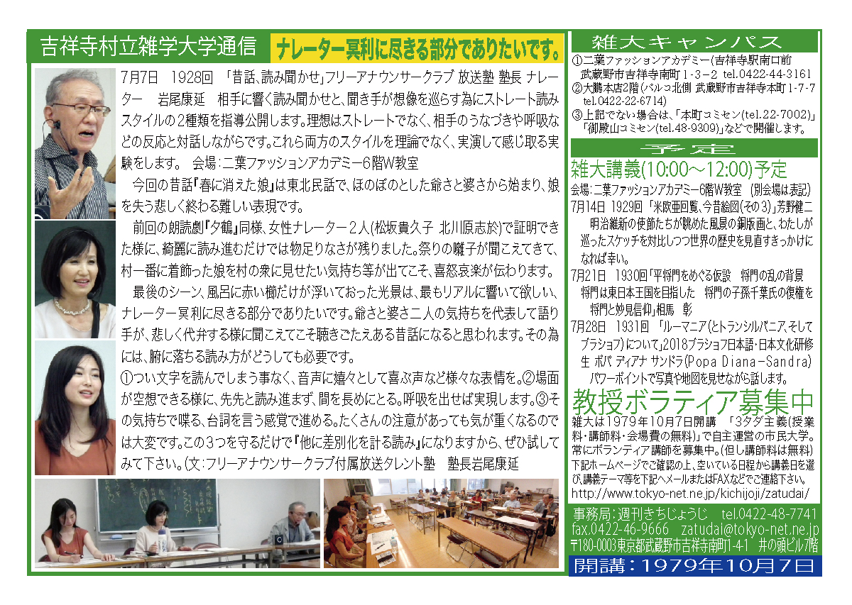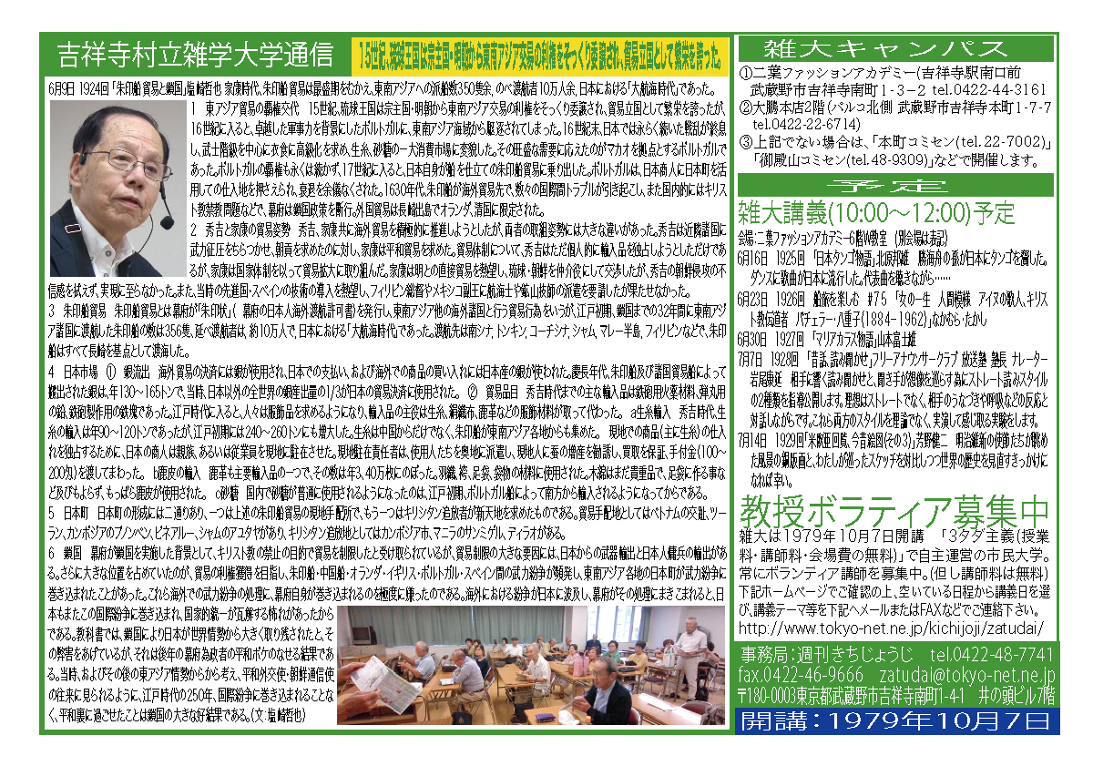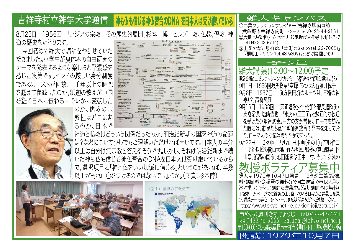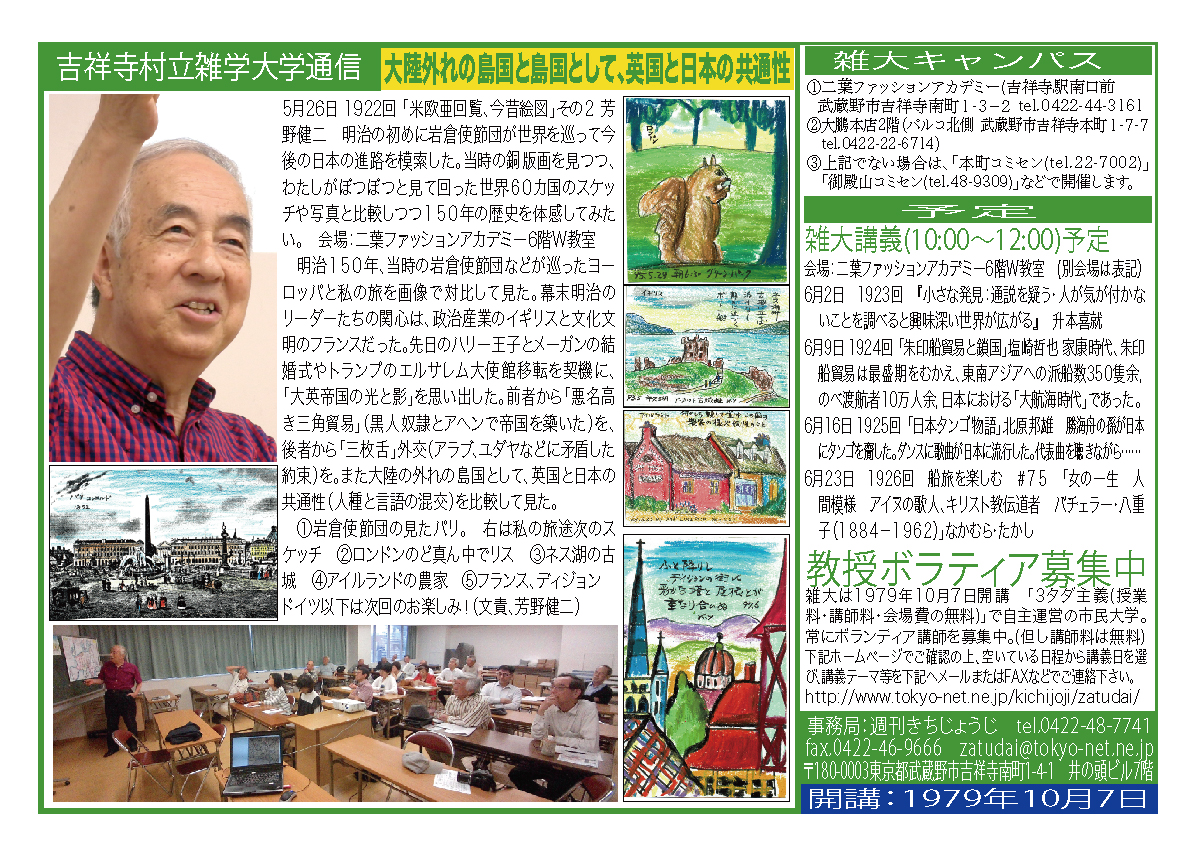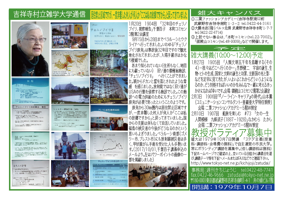 「週刊きちじょうじ1975年に創刊して・・・、そして雑学大学は1979年に開講して・・・、そして将来は・・・?」大橋一範 会場:二葉ファッションアカデミー6階W教室 |