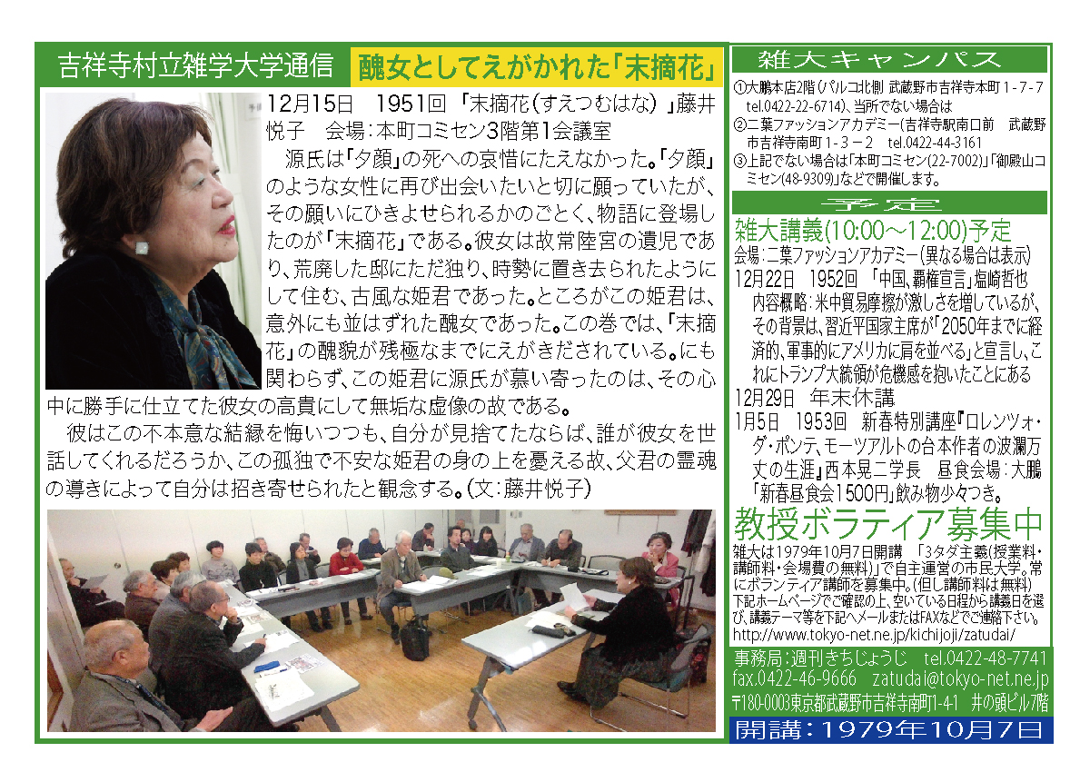 | 12月15日 1951回 | 「末摘花(すえつむはな) 」藤井悦子 会場:本町コミセン3階第1会議室 |